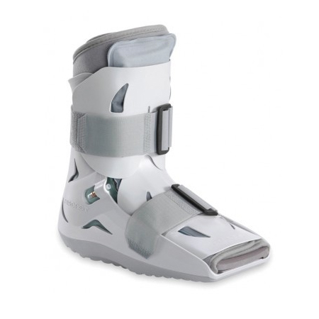 This is a short boot. It supports and protects the foot and ankle while allowing you to walk. It has padded air cells that provide compression and help circulation. It is used for both foot and ankle injuries—both sprains and minor fractures.